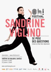 Dans son spectacle « Sandrine Viglino se pose des questions (mais se fout des réponses), elle s’est inspirée des spectacles du Cirque du Soleil. Elle aura des effets spéciaux, des costumes dessinés par Lady Gaga (en tous cas, elle utilise le même jambon pour les doublures) et la probable présence de Céline Dion pour la chanson de fin (sauf si elle n’a pas trouvé de jeune fille pour garder les enfants). Son humour inspiré de Charlie Chaplin, Raymond Devos, Coluche, Jamel Debouzze, Louis de Funès, Les Nuls, Carabine FM, Daniel Prévost, Pierre Desproges, Jacques Métrailler, Muriel Robin, Franck Dubosc, Florence Foresti, les Inconnus et sa grand-mère, fait de son spectacle quelque chose de particulièrement goûtu». Je serais vous, je viendrais. Et en plus, vous serez bien assis (offre valable dans certaines salles uniquement).
